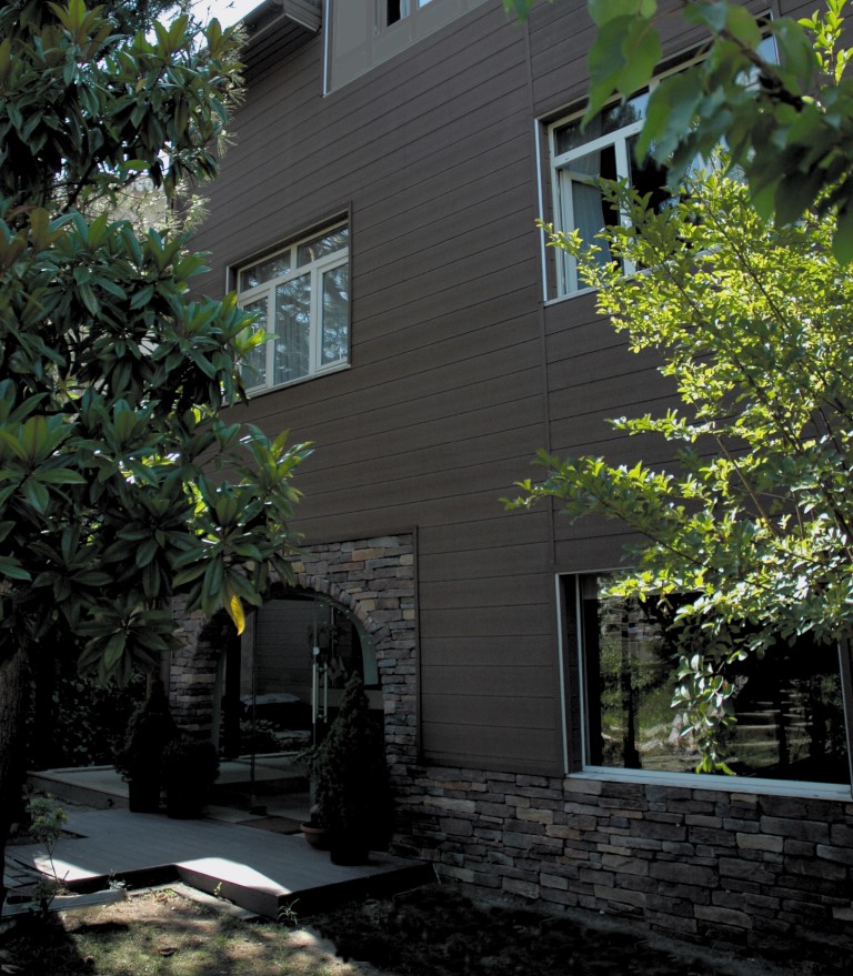 Ahşap kompozit cephe kaplama profilleri mükemmel yalıtım özelliğinin yanı sıra yağmura, rüzgara, güneşe ve kara karşı yüksek koruma sağlar.